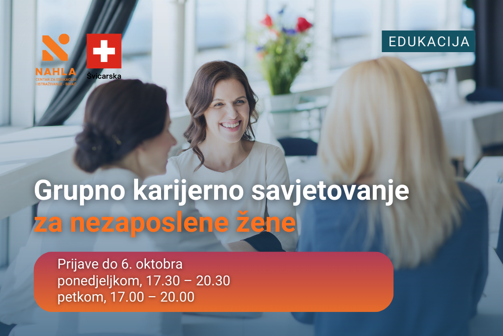 Pozivamo sve nezaposlene i dugoročno nezaposlene žene da se pridruže našem grupnom karijernom savjetovanju! Kreiraj svoj profil kompetencija i osnaži se kroz prepoznatu Profilpass metodologiju koja je pomogla ženama širom svijeta da osvijeste svoje kompetencije, znanja i vještine, te naprave naredni korak u svojoj karijeri!